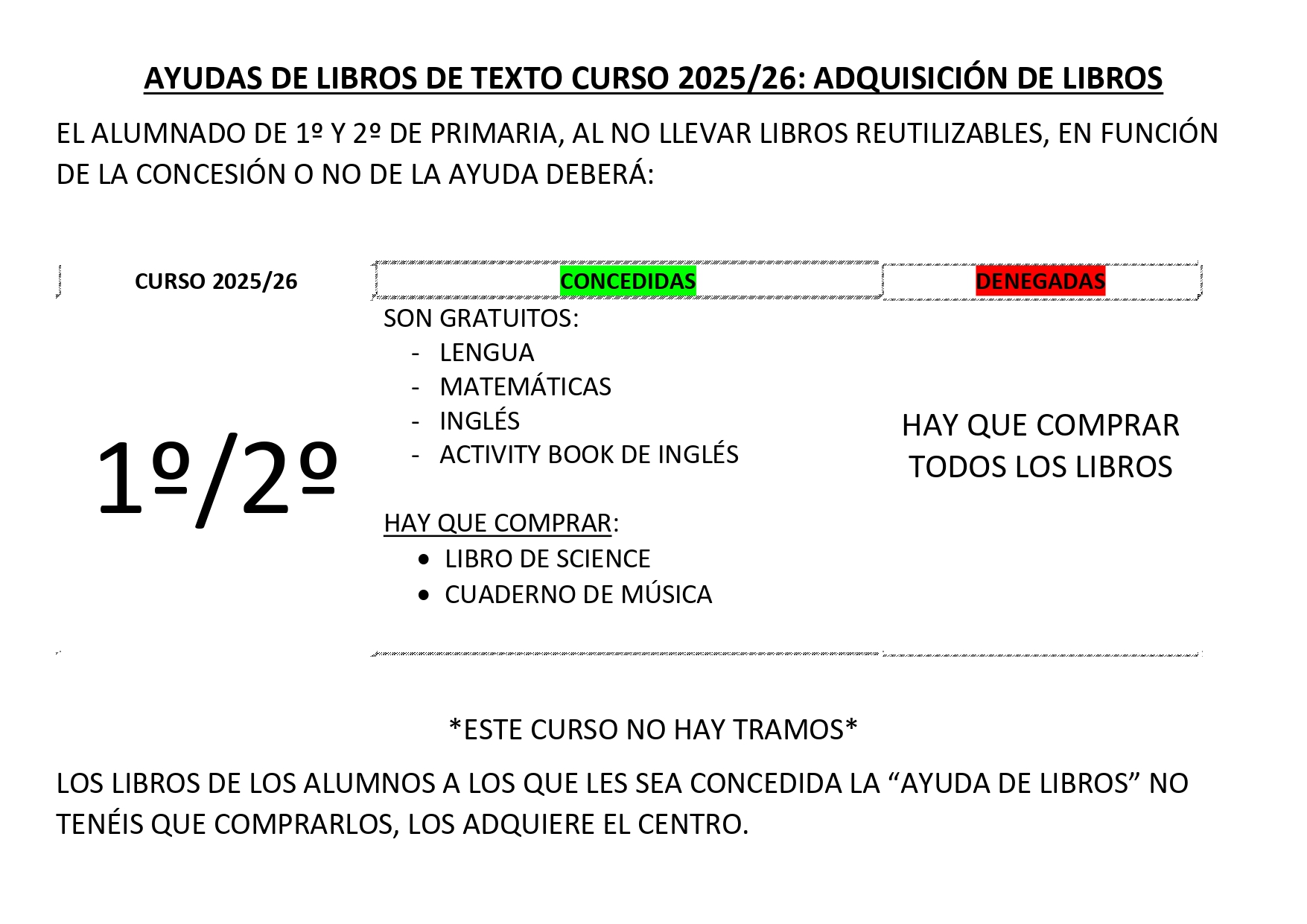 Aquí teneis los libros que deberíais comprar en función de la CONCESIÓN o NO de las ayudas de libros cuyo plazo finaliza mañana 16 de julio.